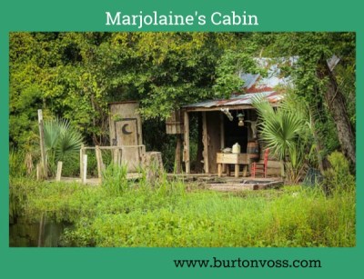 Next to a small fork of the creek was a cabin with its back jammed into the brush. Rust threatened the tin roof and a chair that was already rusted or painted orange waited on the small porch. The privy, only a few steps away, leaned in the soggy ground. A couple of fan-like plants I’d never seen before grew in the yard.